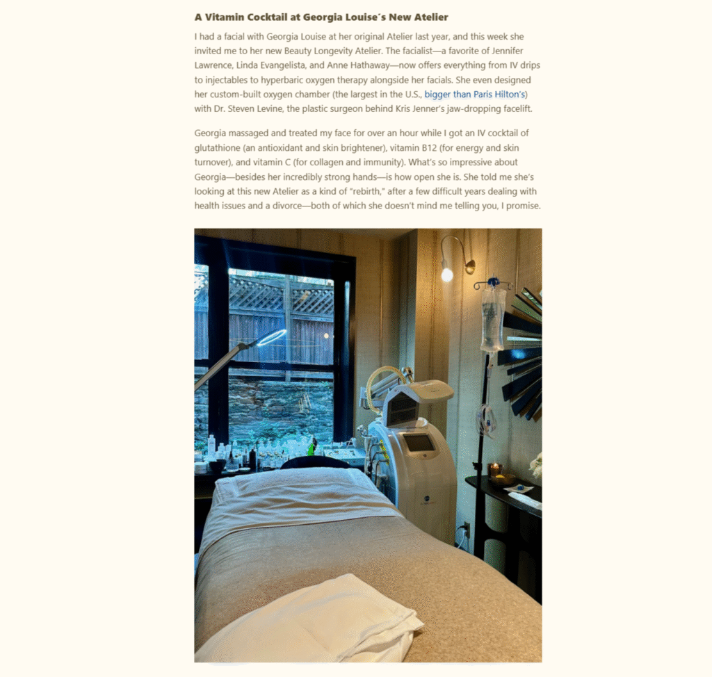 For over 25 years, Georgia Louise has redefined what it means to age beautifully. Her philosophy is simple yet powerful: skincare should be exceptional, effective, and deeply personal. With every facial, every product, every touch, she invites you to embrace the art of aging softly.