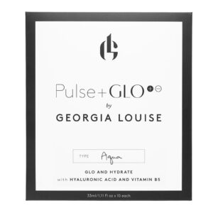 The Aqua Sheet Mask (for dry/normal skin) covers the face and neck and gives a long-lasting glow and treats dehydration for smoother, softer skin. Specifically made for Pulse+GLO, the device’s galvanic current pushes the mask’s active ingredients deeper and faster into the skin for remarkable results. Each mask is made from hypo-allergenic bamboo cotton infused with ionizable essences and natural actives. Suitable for even the most sensitive skin.